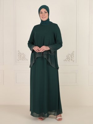 Sevdem Abiye Yeşil Taş Detaylı Abiye Elbise