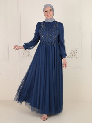 MODAYSA İndigo İşlemeli Abiye Elbise