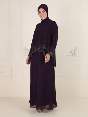 Sevdem Abiye Mor Taş Detaylı Abiye Elbise