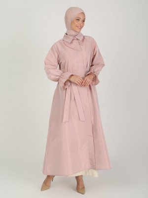 Nuum Design Pembe Tafta Trençkot Gizli Düğmeli Cep Detaylı