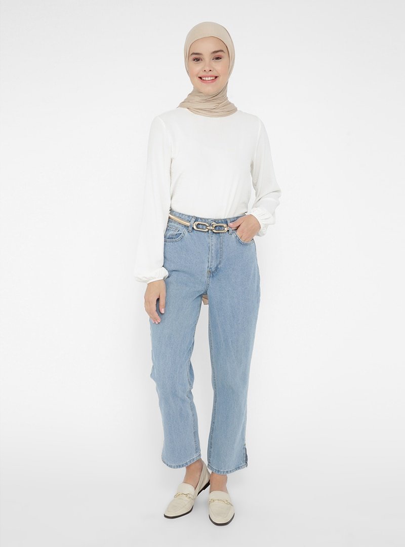 Benin Mavi Yırtmaç Detaylı Straight Kot Pantolon