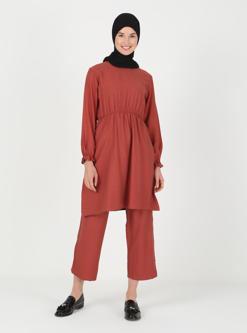 ENSANUR MODA Kiremit Tunik & Pantolon İkili Takım