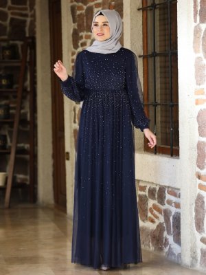 Amine Hüma Lacivert Işıltı Abiye Elbise