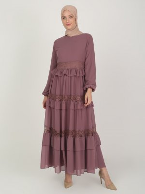 BÜRÜN Gül Kurusu Dantel Detaylı Abiye Elbise