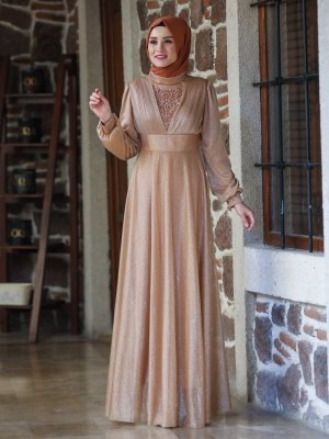 Amine Hüma Gold Elmas Abiye Elbise