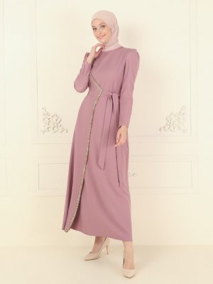 AYŞE MELEK TASARIM Gül Kurusu Taşlı Abiye Elbise