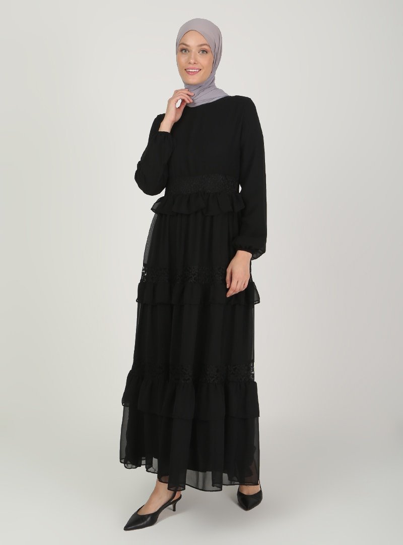 BÜRÜN Siyah Dantel Detaylı Abiye Elbise