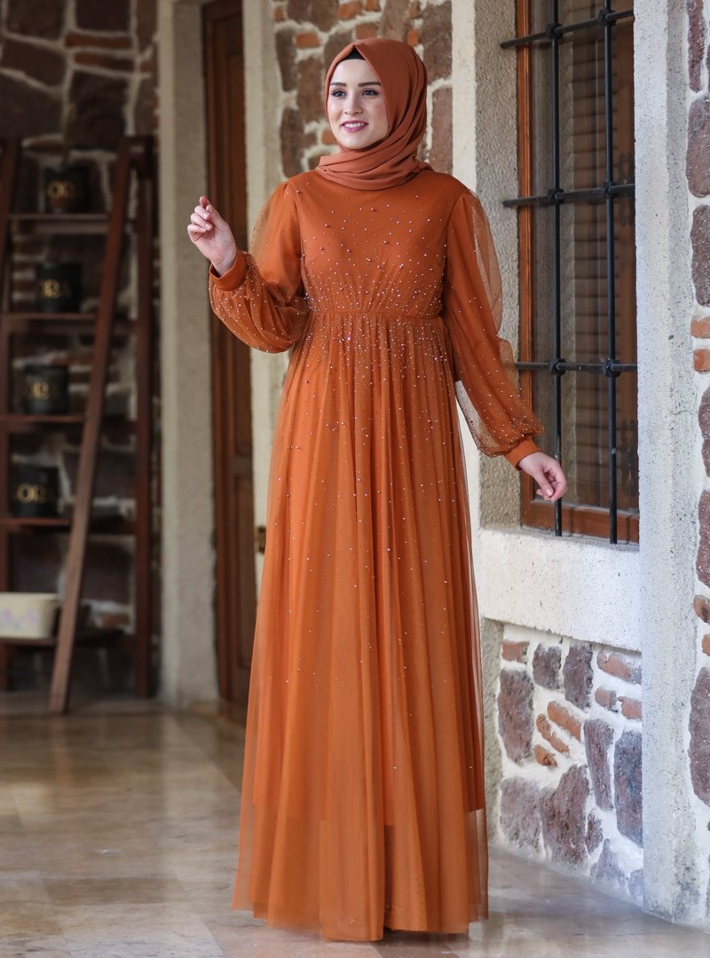 Amine Hüma Kiremit Işıltı Abiye Elbise
