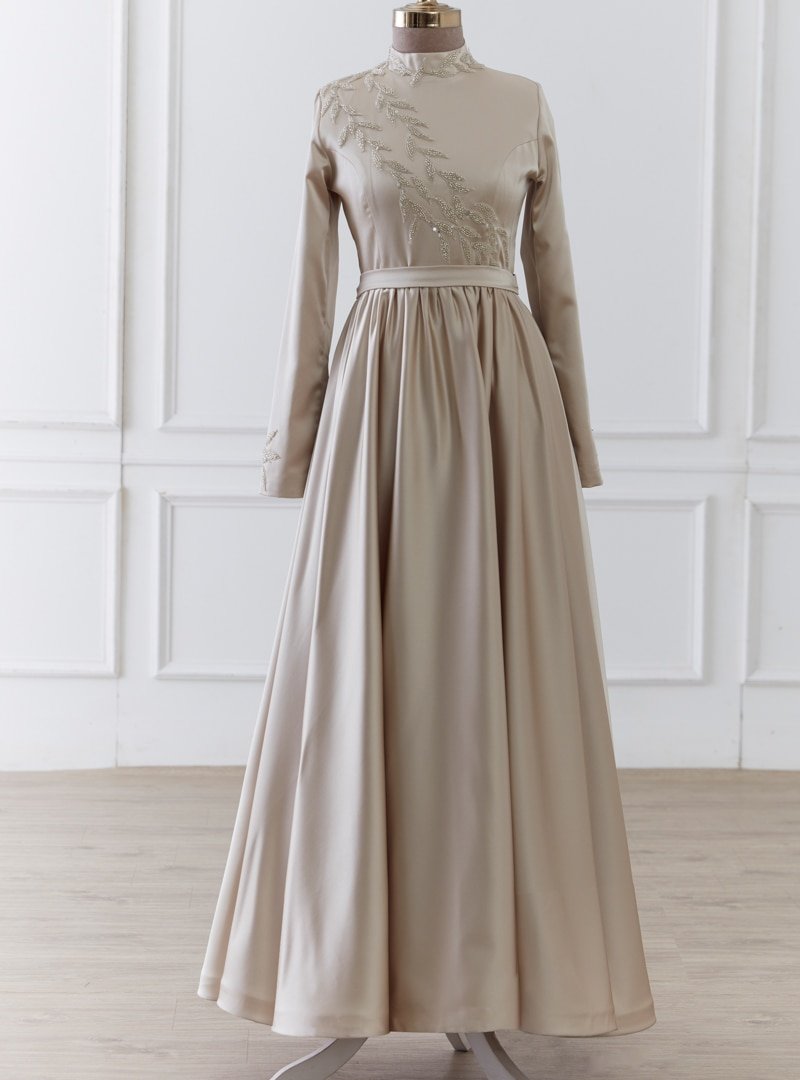 LARACHE Bej Aksa Saten Abiye Elbise