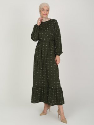 ECESUN Haki Kol Uçları Lastikli Elbise