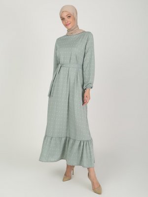 ECESUN Çağla Kol Uçları Lastikli Elbise