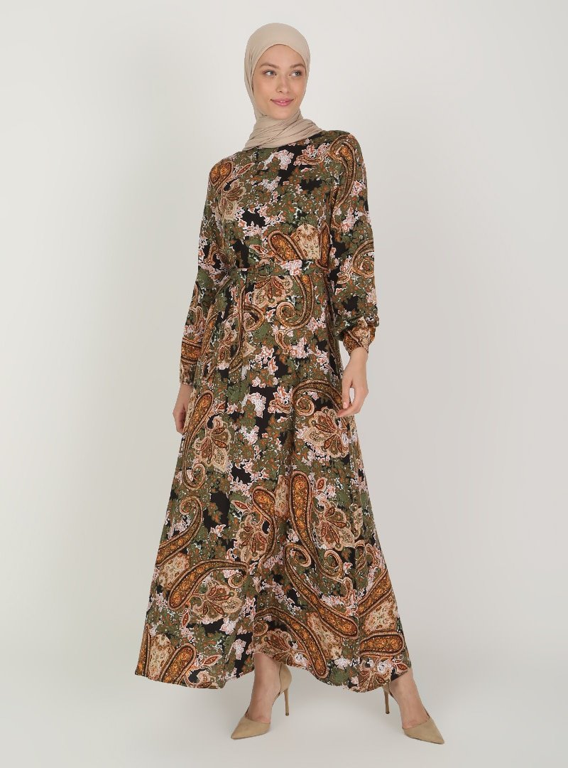 ECESUN Haki Desenli Elbise