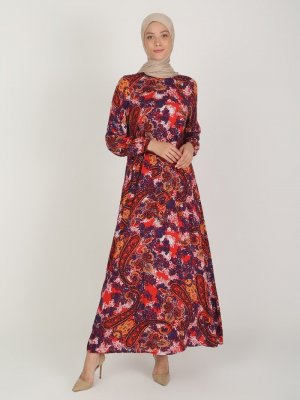 ECESUN Kırmızı Desenli Elbise