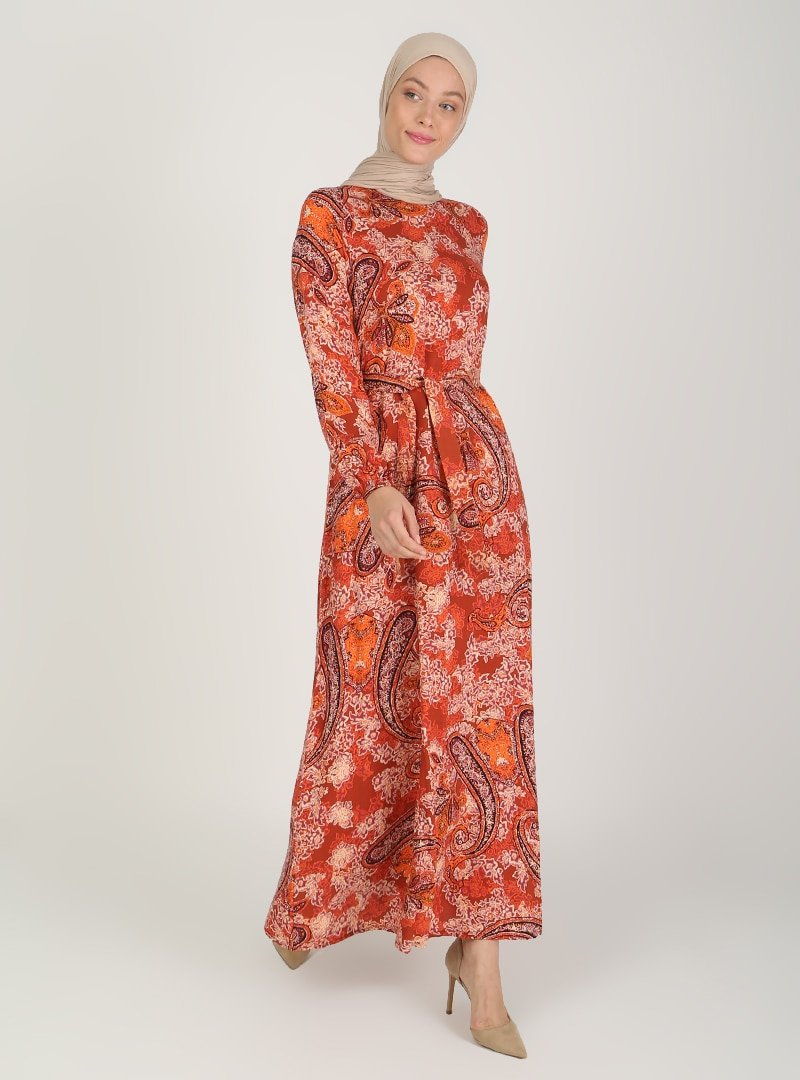 ECESUN Kiremit Desenli Elbise