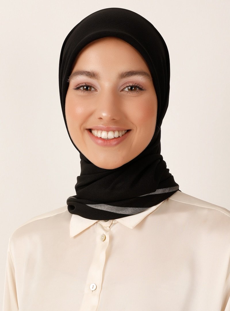 Miray Siyah Kemik 120 Cm Floş Şifon 3 Çizgili Eşarp