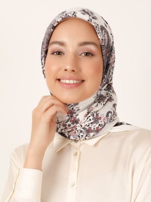 Miray Krem Çiçek Desenli Cashmere Kışlık Eşarp