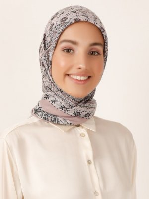 Miray Gül Kurusu Pudra Otantik Desen Cashmere Kışlık Eşarp
