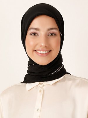Miray Siyah Kemik 120 Cm Floş Şifon Ekose Eşarp