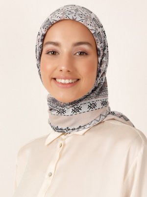 Miray Vizon Kırık Beyaz Otantik Desen Cashmere Kışlık Eşarp