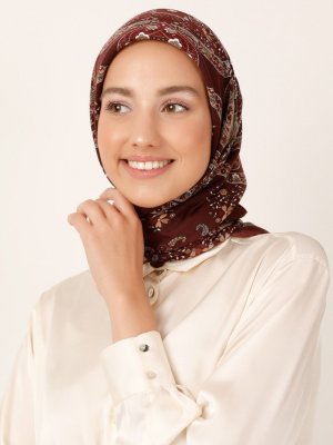 Miray Bordo Çiçek Desenli Cashmere Kışlık Eşarp
