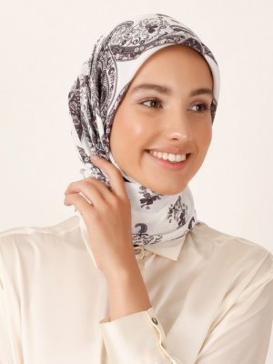 Miray Kırık Beyaz Çiçek Desenli Cashmere Kışlık Eşarp