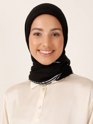 Miray Siyah Gümüş 120 Cm Floş Şifon Ekose Eşarp