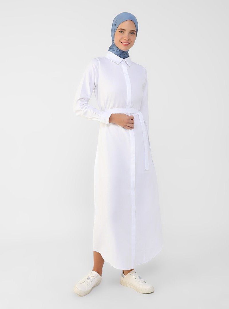 Refka Beyaz Oxford Kumaştan Gizli Düğmeli Uzun Gömlek Elbise