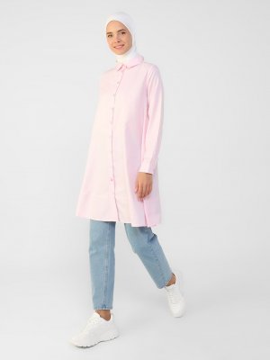 Refka Açık Pembe Oxford Kumaştan Düğmeli Mevlana Gömlek