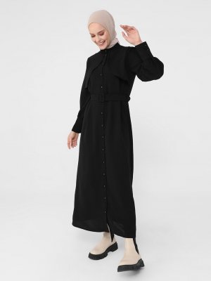 Refka Siyah Rüzgarlık Detaylı Kemerli Elbise
