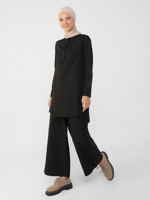 Refka Siyah Çıtçıtlı Tunik & Pantolon İkili Takım