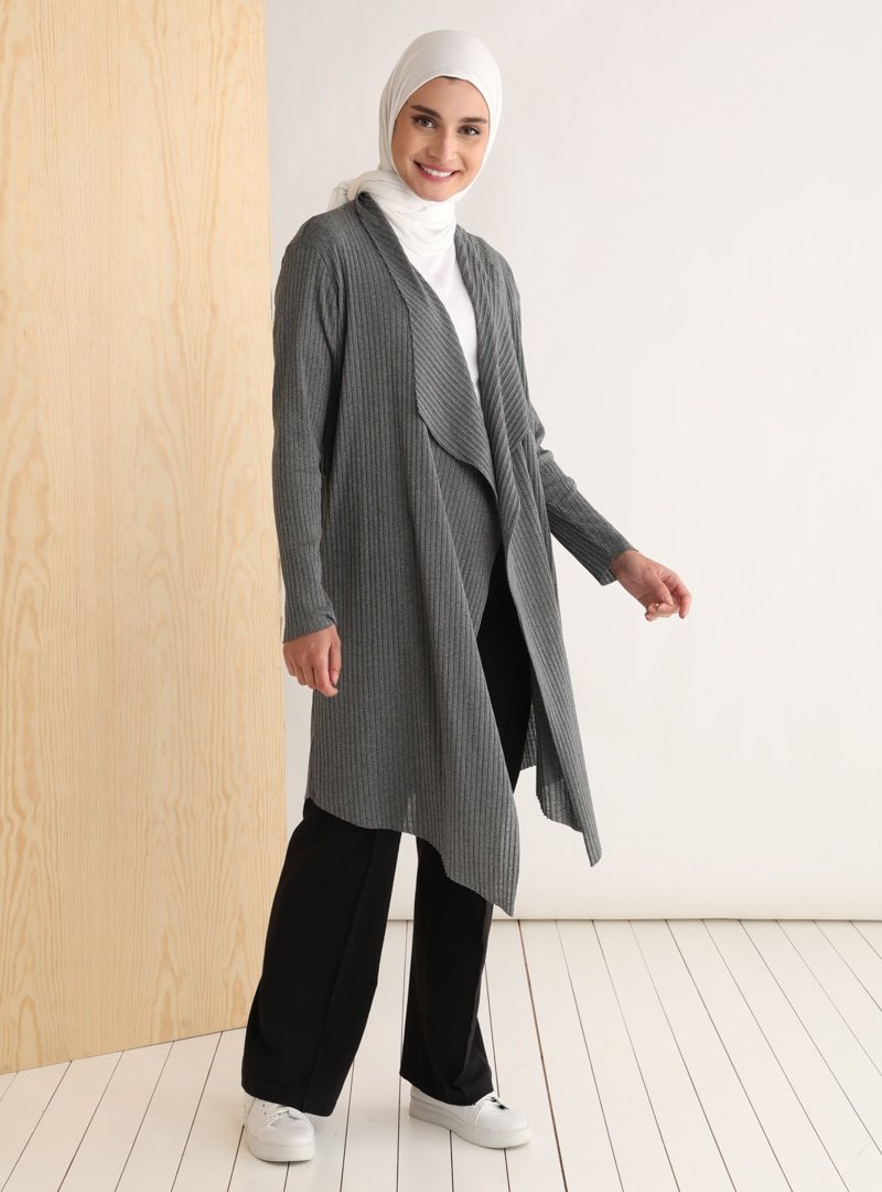 Tavin Antrasit Kuşak Detaylı Pamuklu Hırka