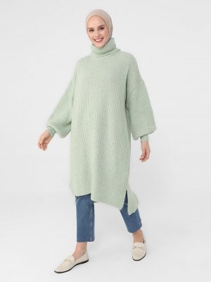 Refka Mint Yeşili Arkası Uzun Triko Tunik