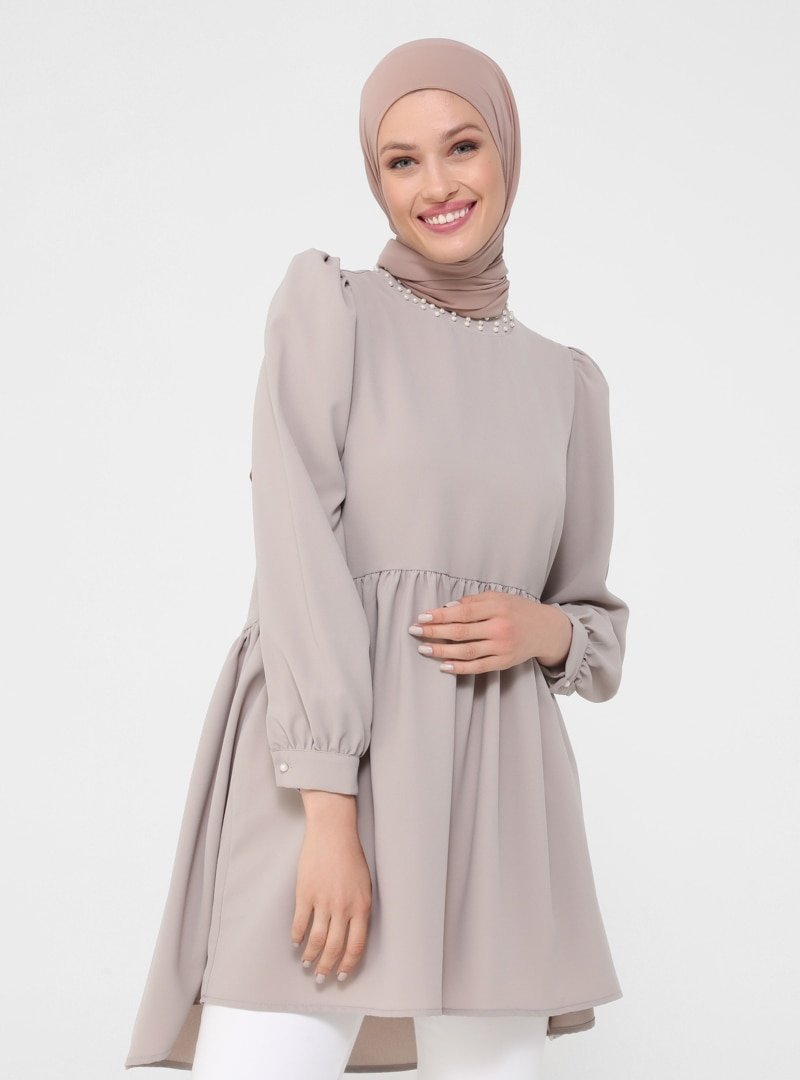 Refka Taş İnci İşlemeli Rahat Kesim Aerobin Tunik