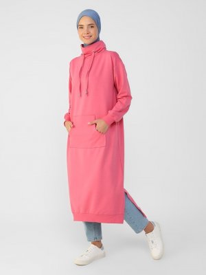 Refka Koyu Pembe Boğazlı Yaka Cepli Sweatshirt