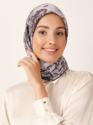 Miray Lila Çiçek Desenli Cashmere Kışlık Eşarp