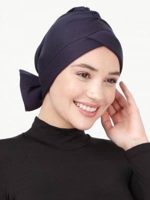 Les Bonnes Lacivert Penye Fiyonklu Hazır Bone