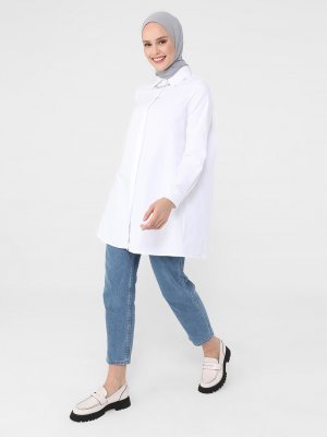 Refka Off White Arkası Piliseli Gizli Düğmeli Tunik