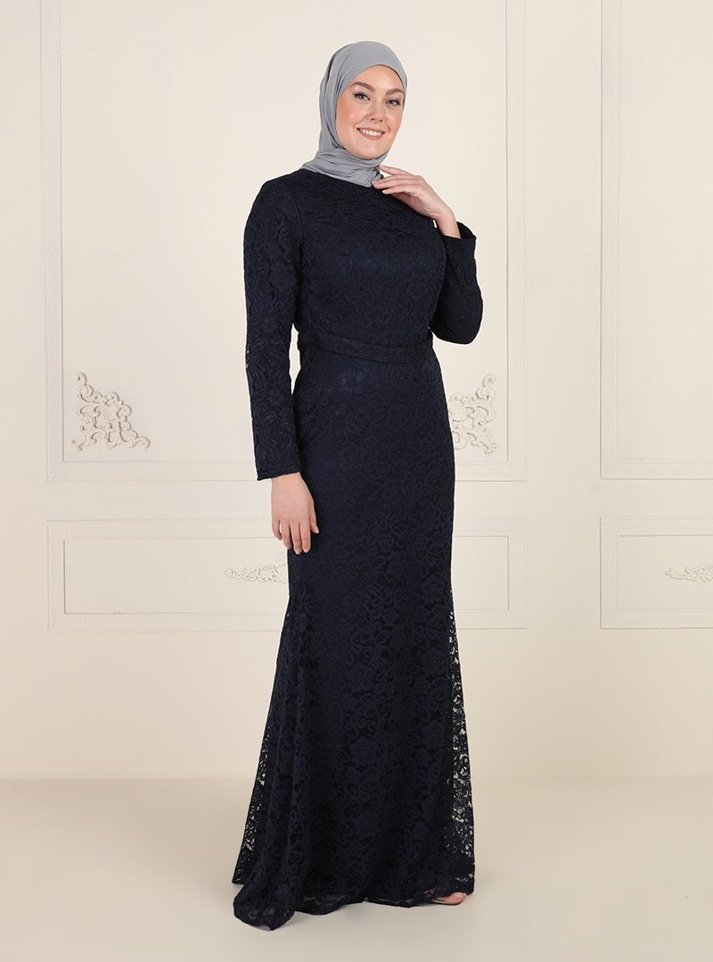Mileny Lacivert Dantelli Abiye Elbise