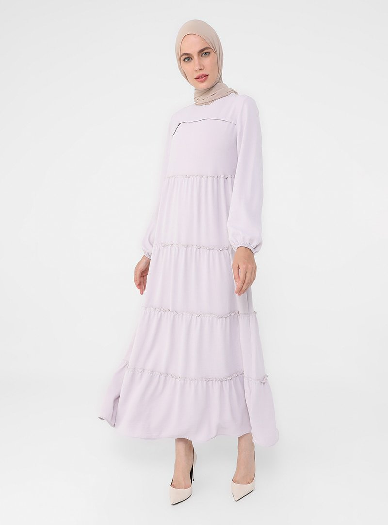 Refka Toz Lila Balon Kollu Salaş Elbise
