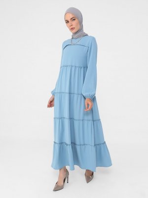 Refka Açık İndigo Balon Kollu Salaş Elbise