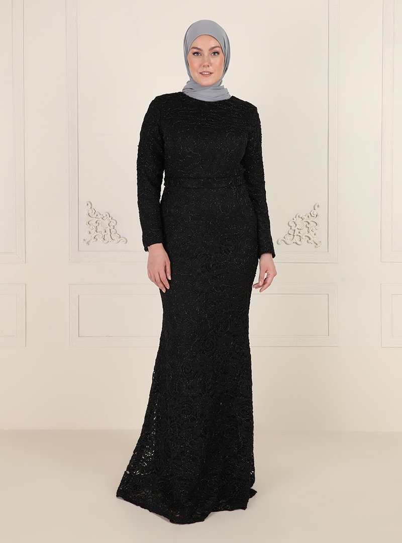 Mileny Siyah Dantel Detaylı Abiye Elbise
