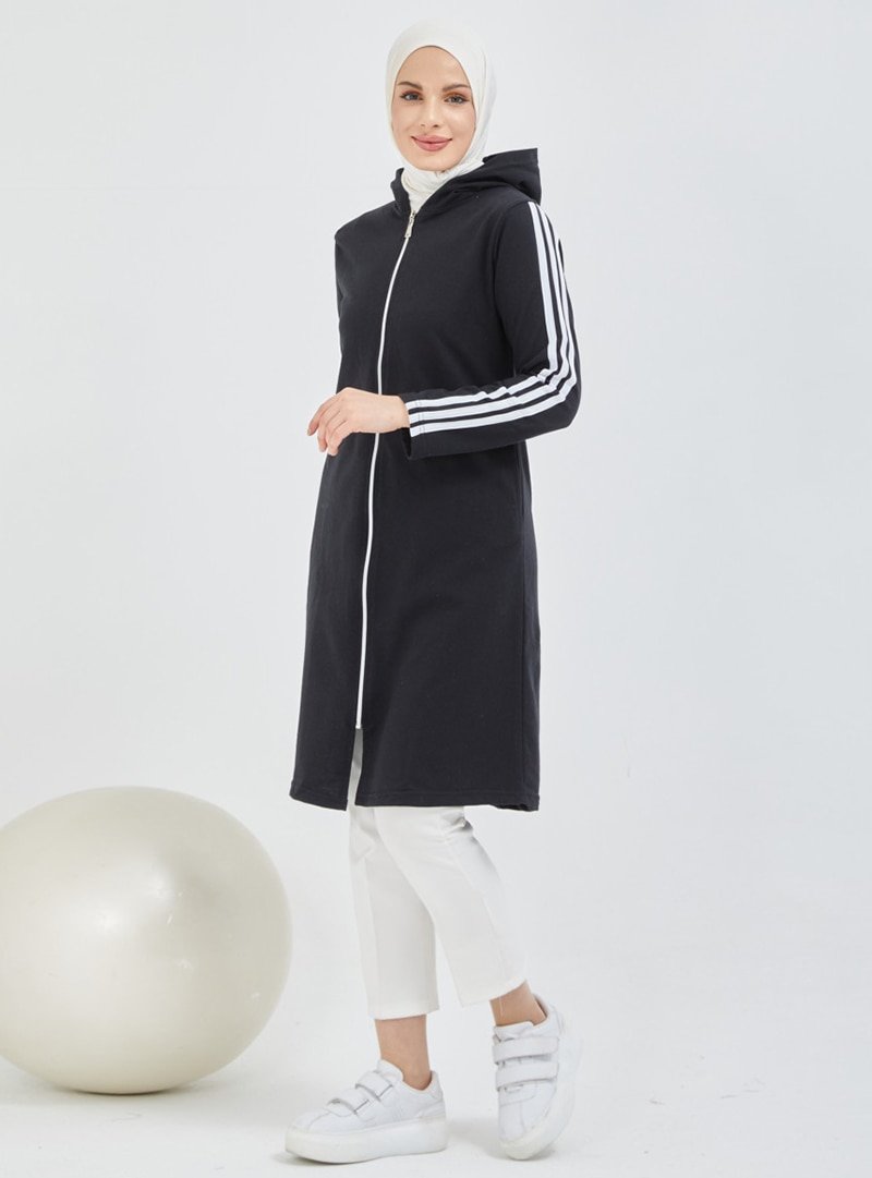 Topless Siyah Şerit Detaylı Spor Kap