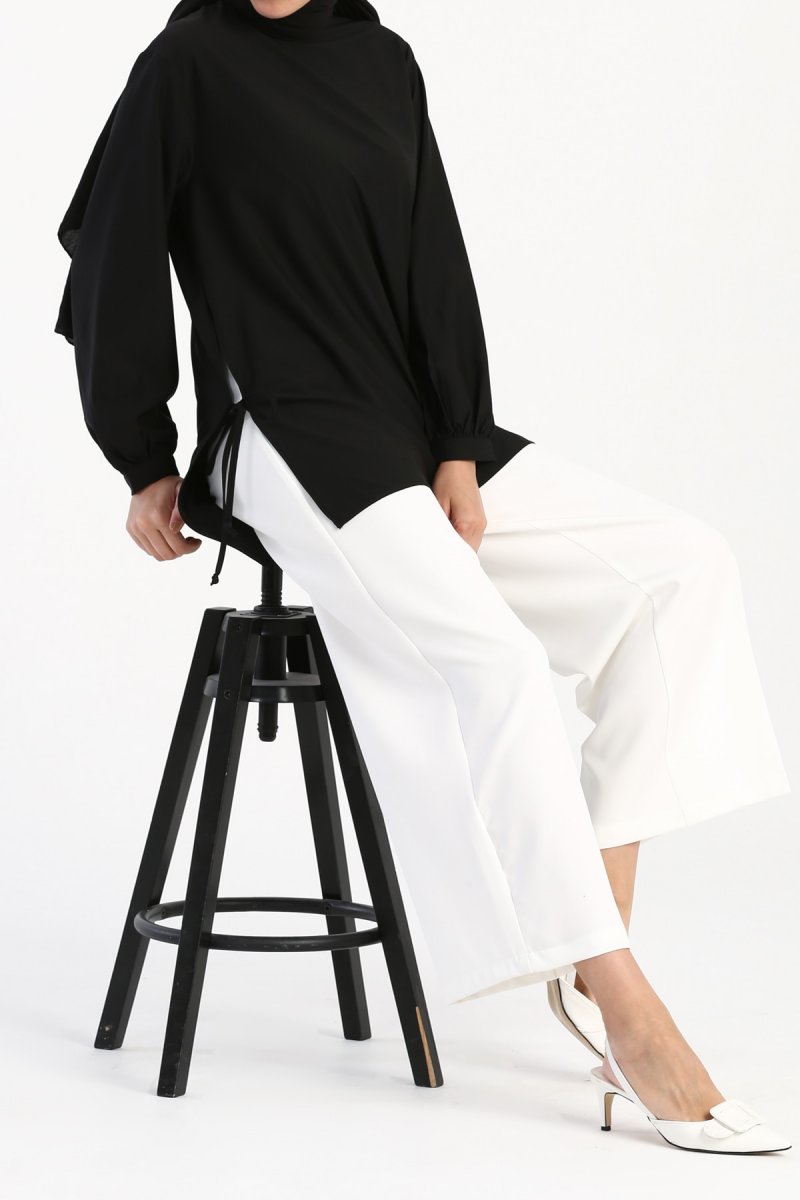 Allday Siyah Yırtmaç Bağcıklı Tunik