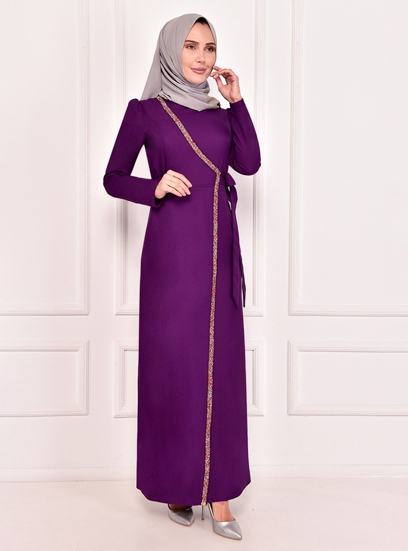 AYŞE MELEK TASARIM Mor Taşlı Abiye Elbise