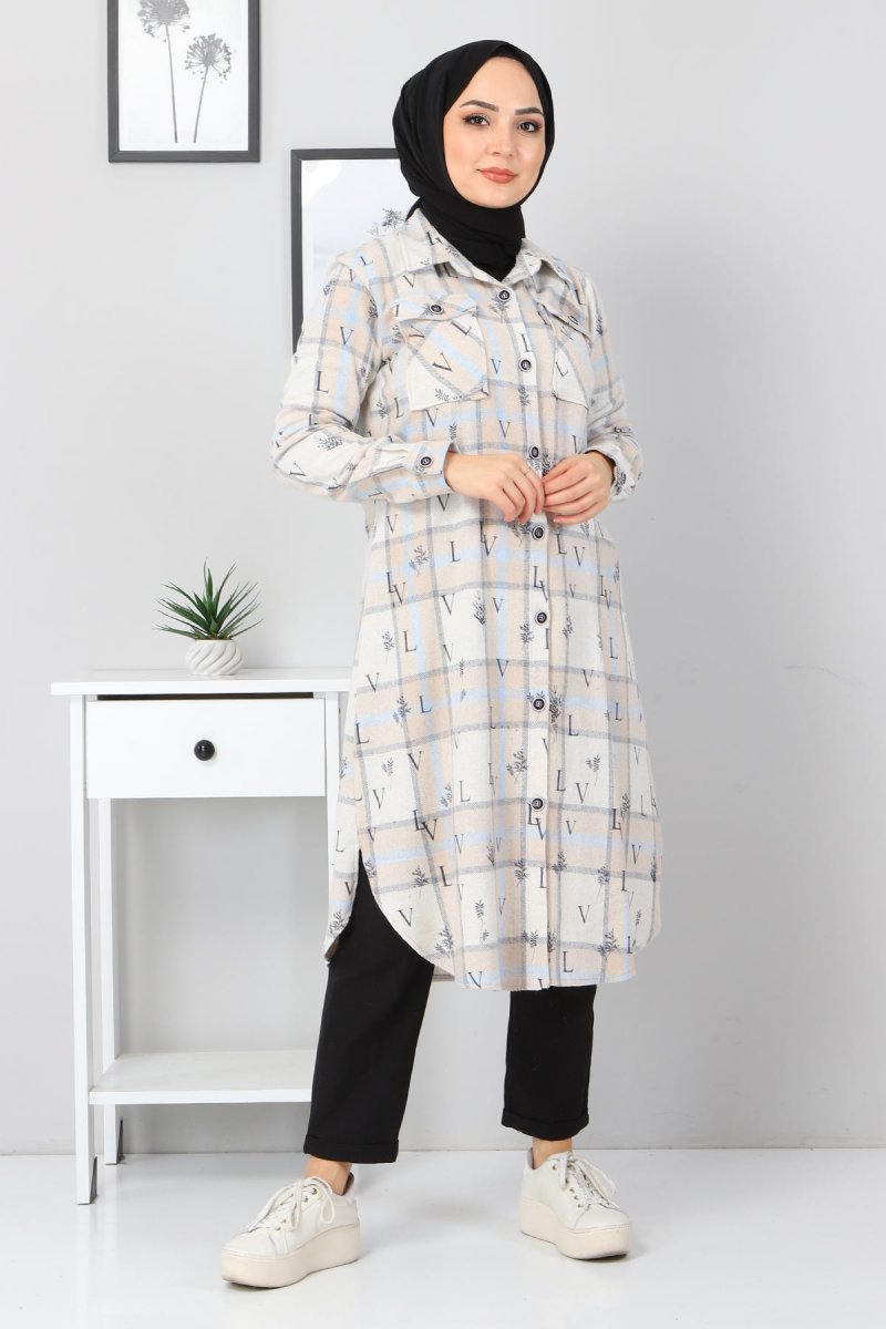 MISSVALLE Bej Düğmeli Cepli Tunik