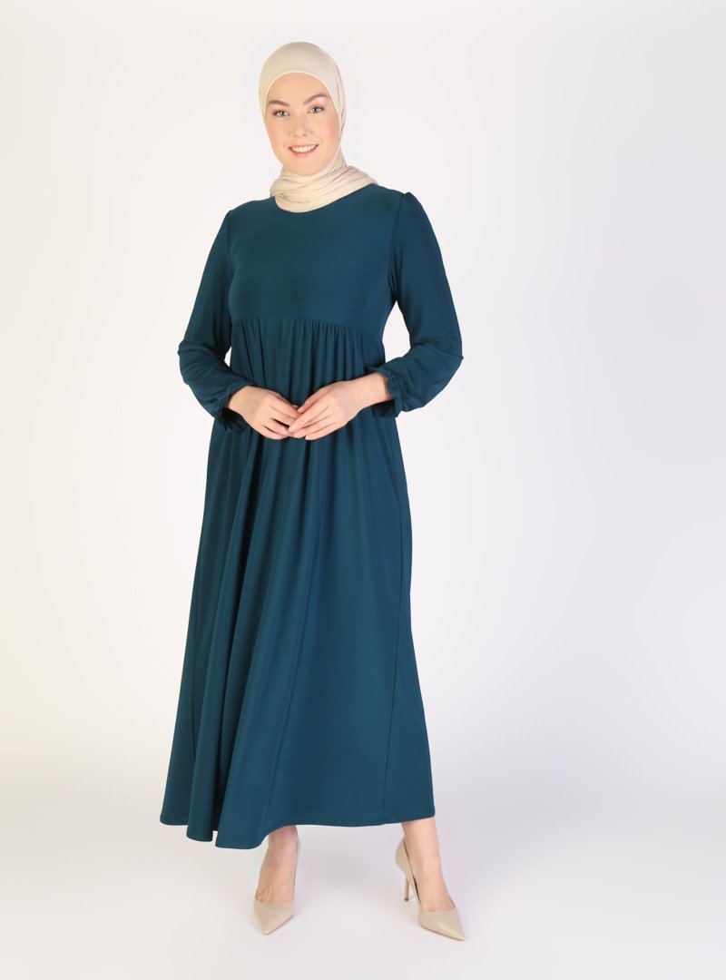ZENANE Zümrüt Kol Uçları Lastikli Elbise