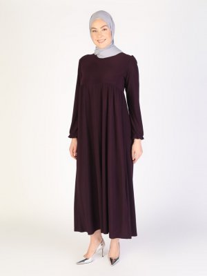 ZENANE Mor Kol Uçları Lastikli Elbise