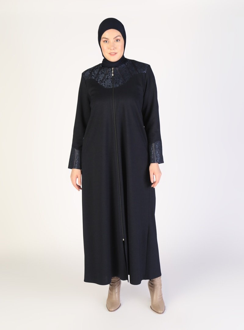 Jamila Lacivert Boydan Fermuarlı Ferace