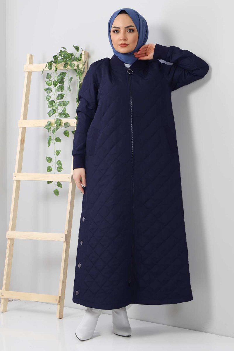 Tesettür Dünyası Lacivert Tam Boy Kapitone Kap