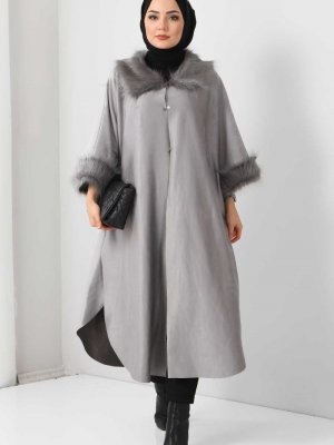 Tesettür Dünyası Gri Süet Panço